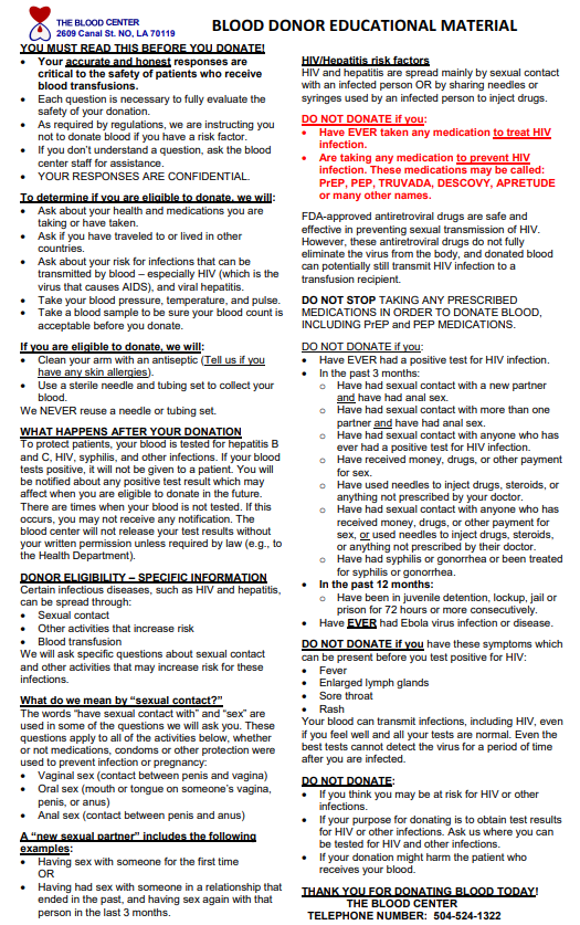 Donors can speed up the donation process by electronically completing the medical history questionnaire online.
